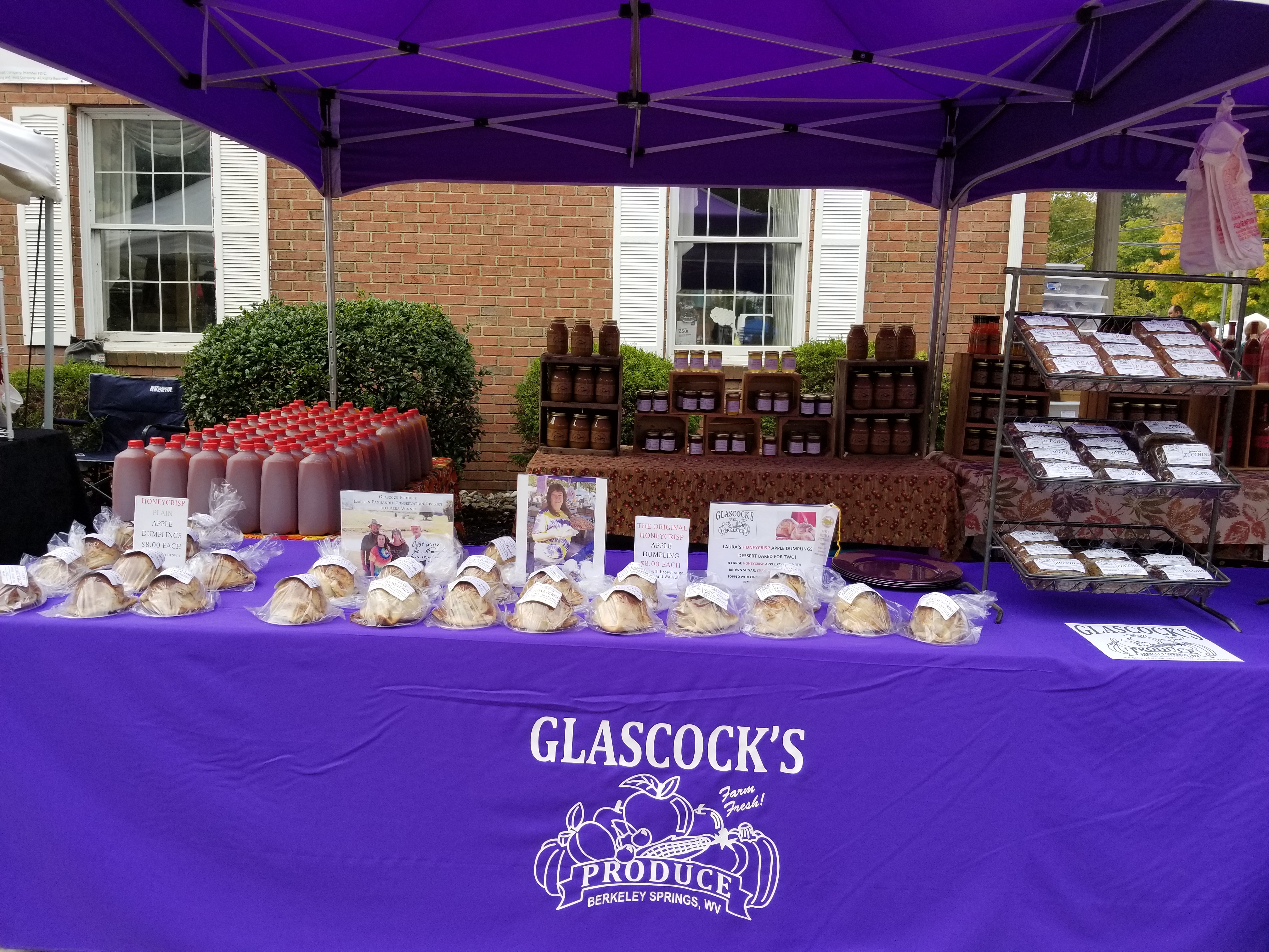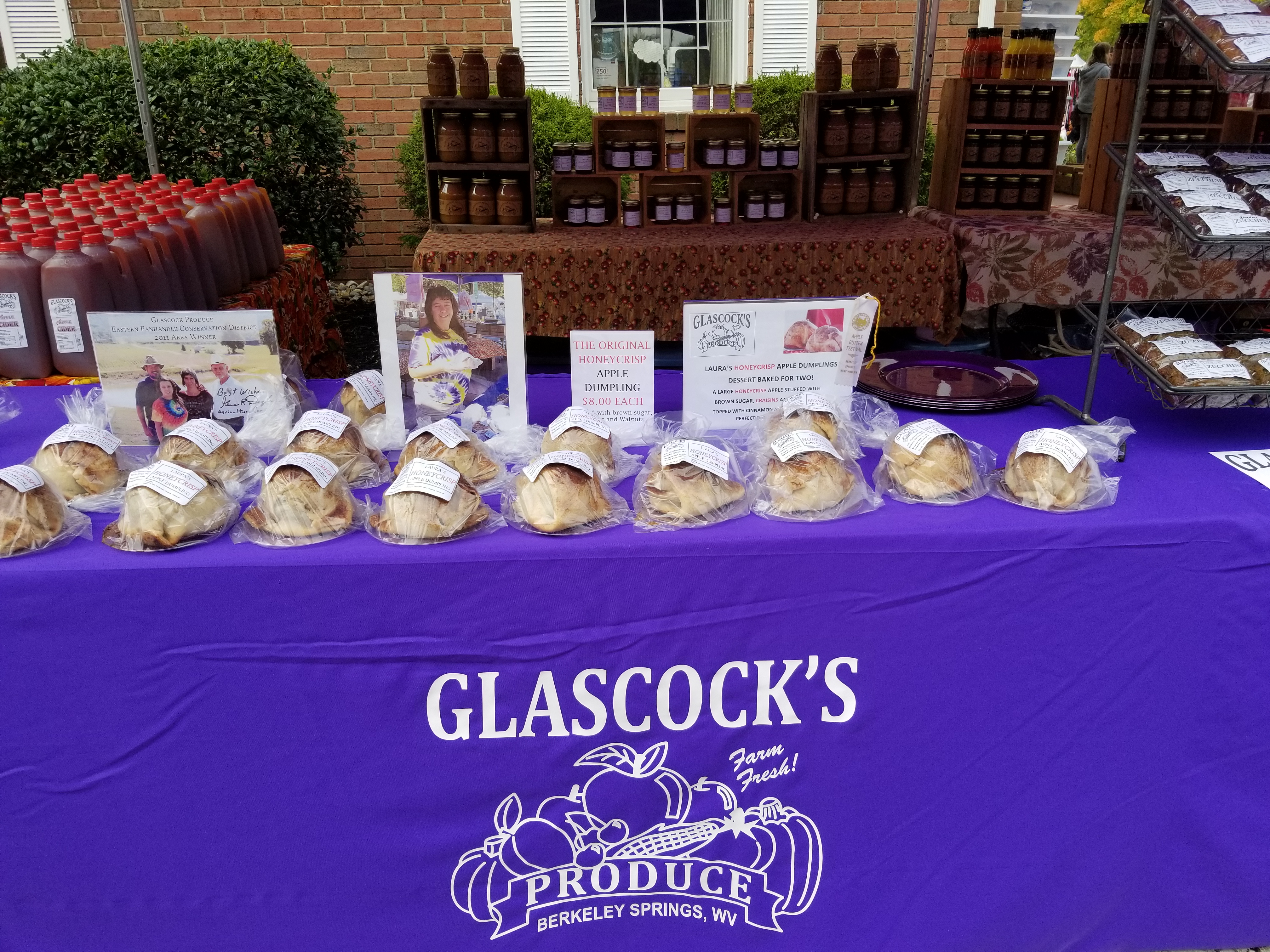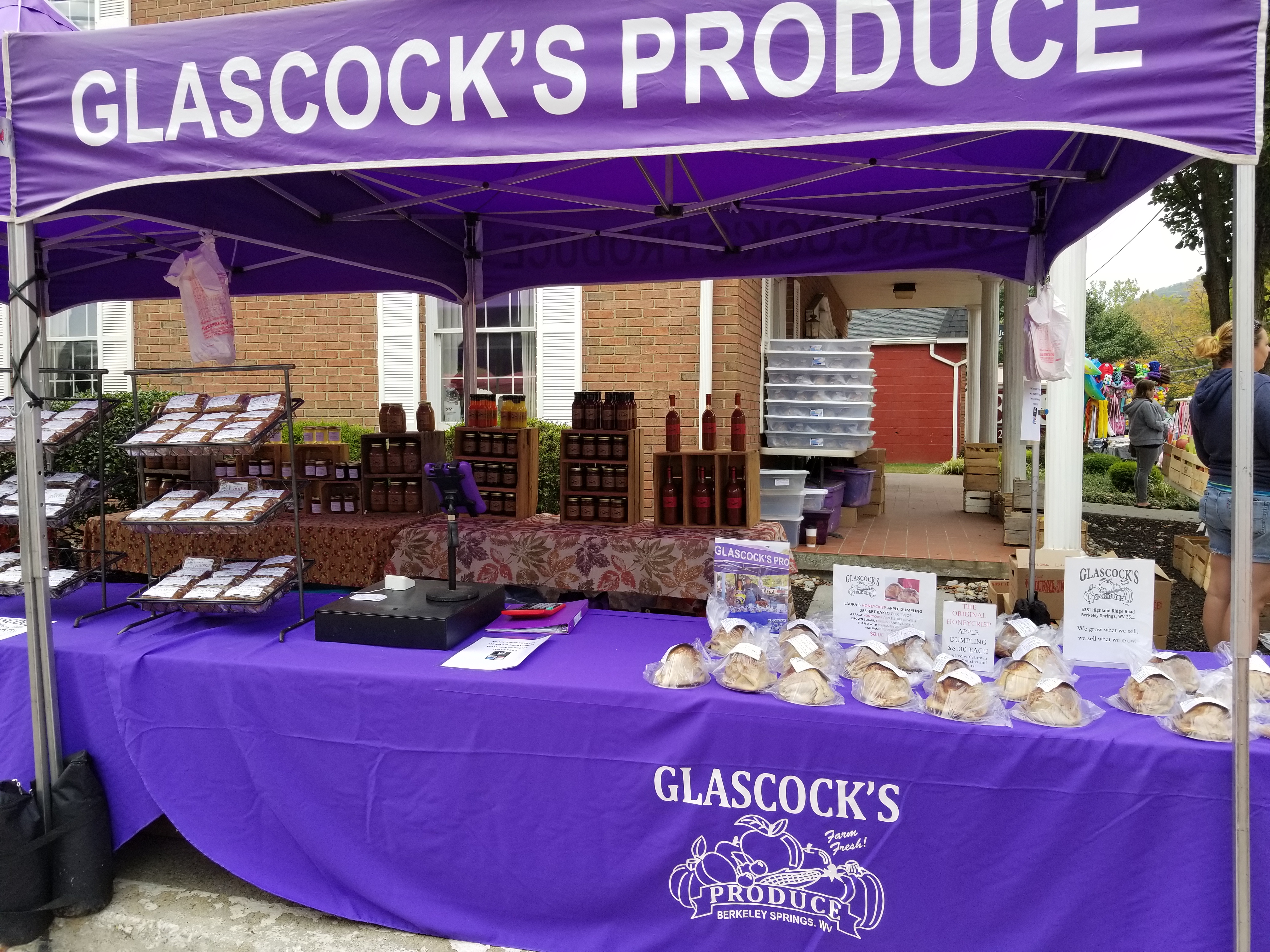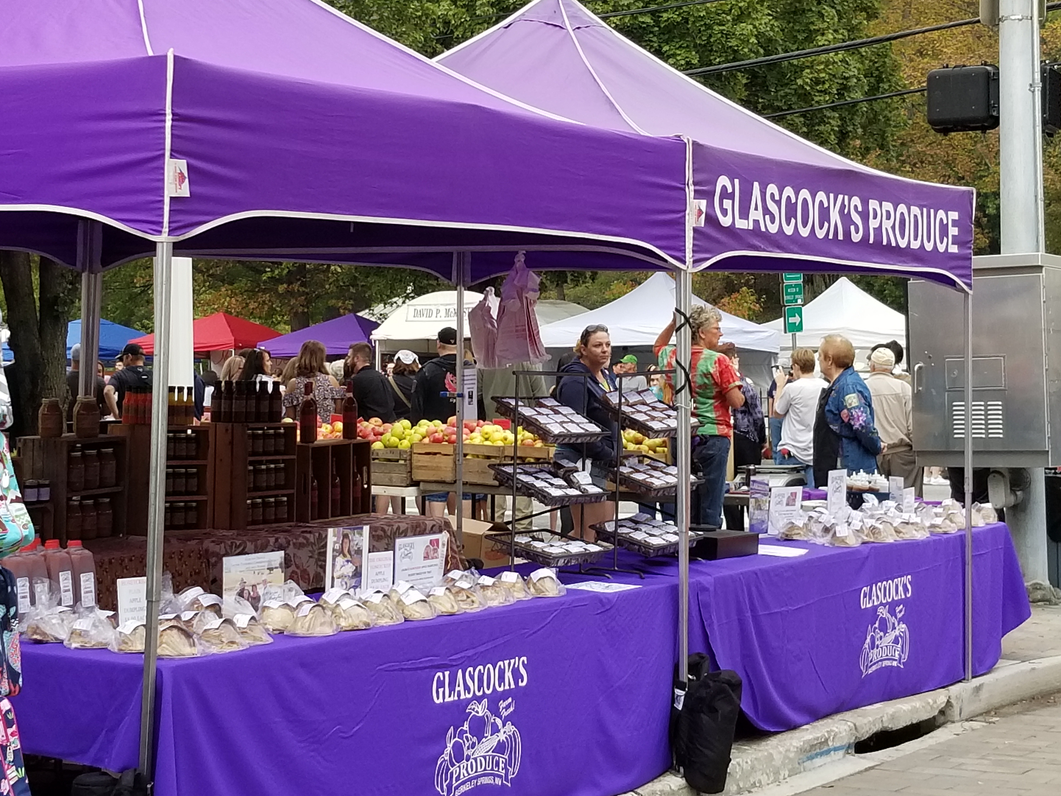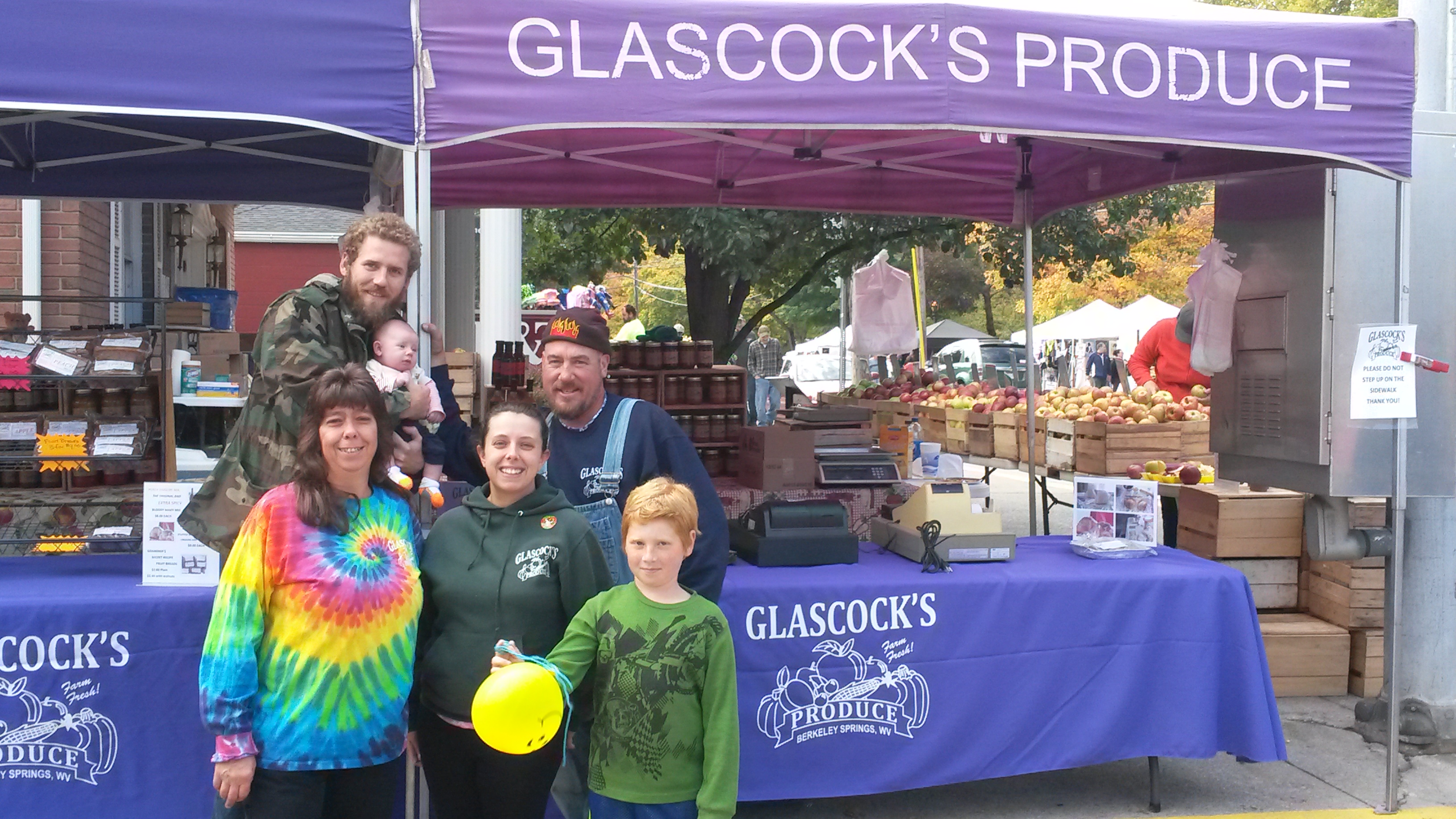 Since 1974, the Apple Butter Festival fills the park and streets of downtown Berkeley Springs on Saturday and Sunday of Columbus Day weekend in October.  Glascock's Produce has been a solid fixture at the festival for over 20 years.